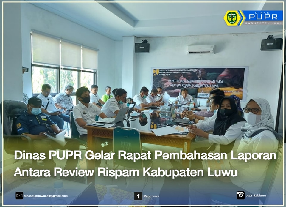 Untuk mendukung target pemerintah Indonesia dalam pencapaian kebutuhan air minum bagi masyarakat melalui program Air Minum Aman dan Berkelanjutan 100%, Pemerintah Kabupaten Luwu melalui Dinas Pekerjaan Umum dan Penataan Ruang (PUPR) melakukan Review Rencana Induk Sistem Penyediaan Air Minum (RISPAM) tahun 2021.